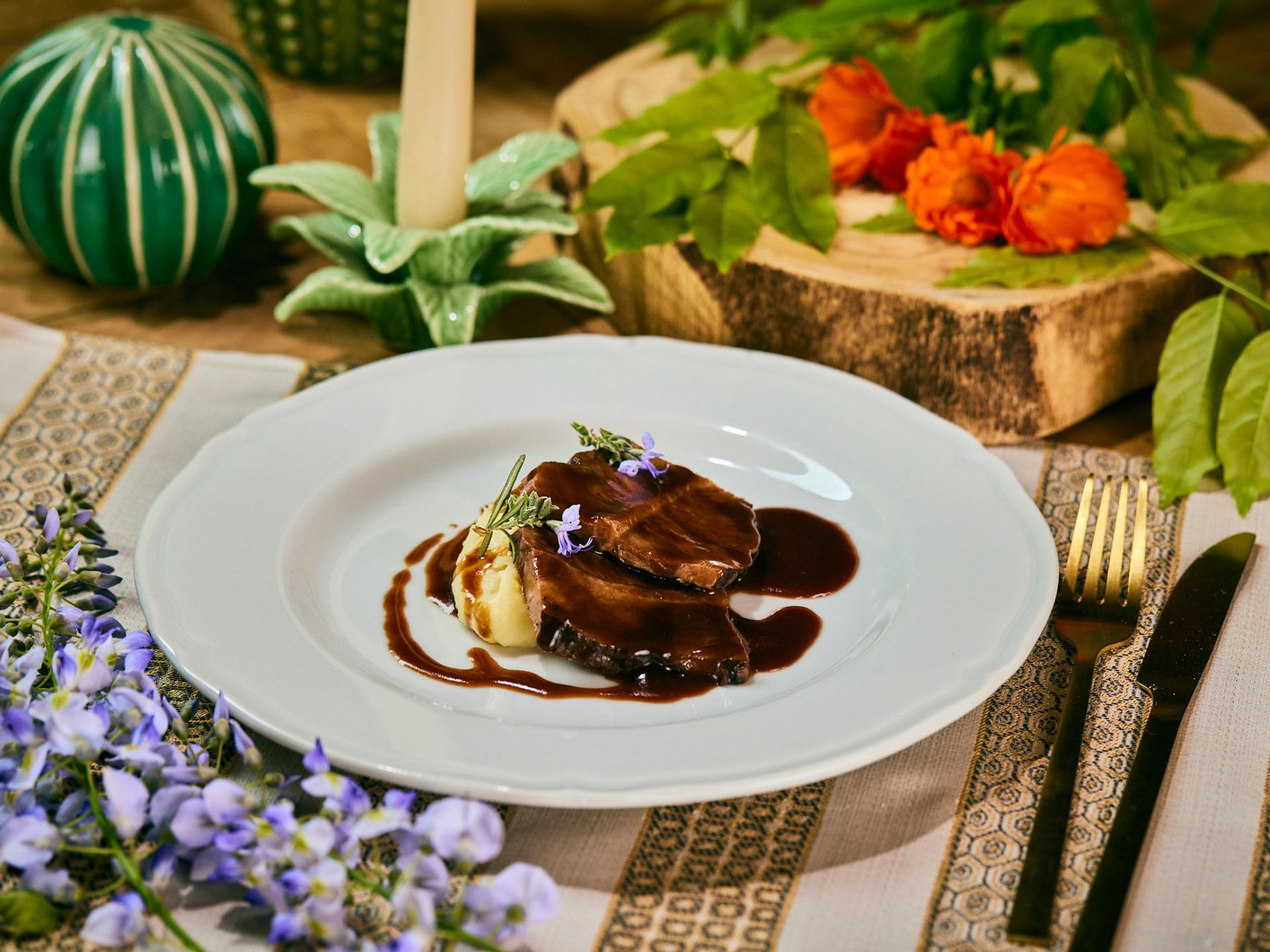 or Braised beef, mash potatoes and red wine