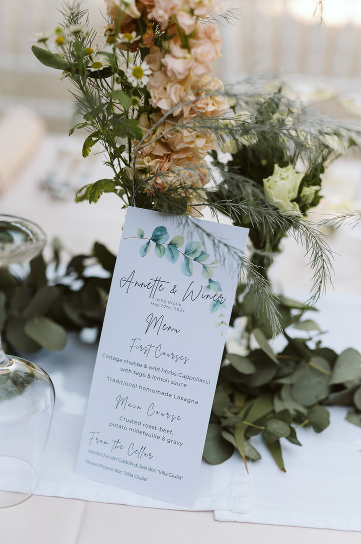 Our in-house design team turns Villa Giulia’s gardens, halls, and Orangerie into a canvas for your story. From suspended olive-branch chandeliers to monogrammed menus, every detail feels effortless, authentic, and unmistakably you.